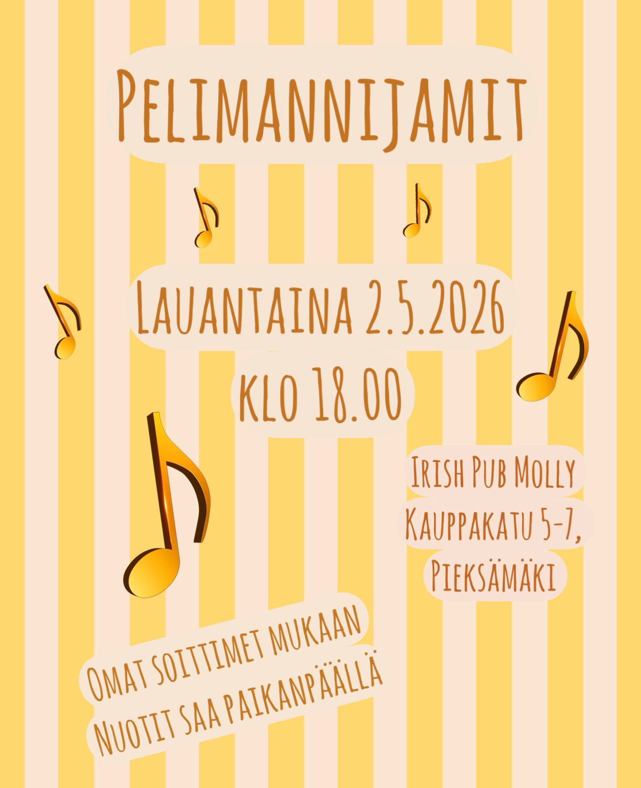 Omat soittimet mukaan, nuotit saa paikanpäällä 🎶😊🍀